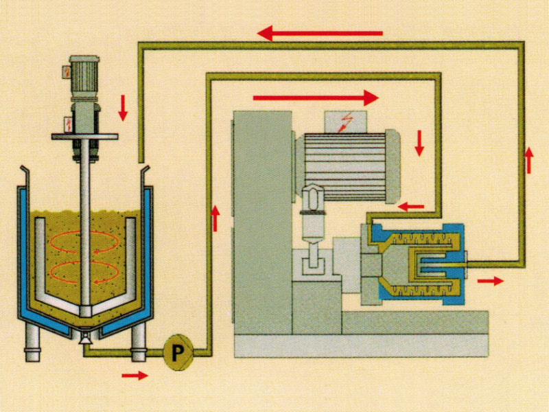 研磨能量集中,所有物料都是在研磨區內進行研磨,所得物料粒徑分布窄;攪拌桶和分散機內漿料大流量循環,所以漿料能在短時間能循環數十遍,大批量處理物料。