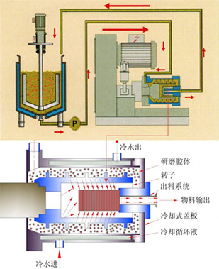 縮短漿料在磨腔內的滯留時間,有效抑制溫度上升。通過循環冷卻水的冷卻,可實現低溫研磨。
